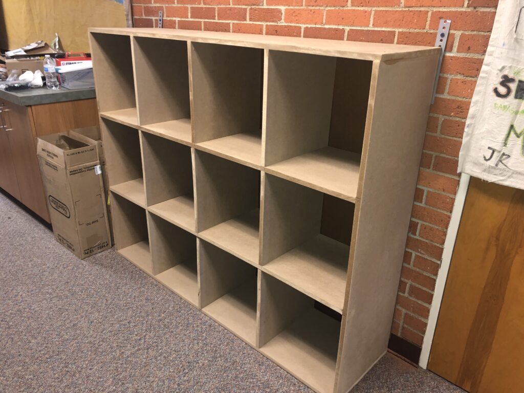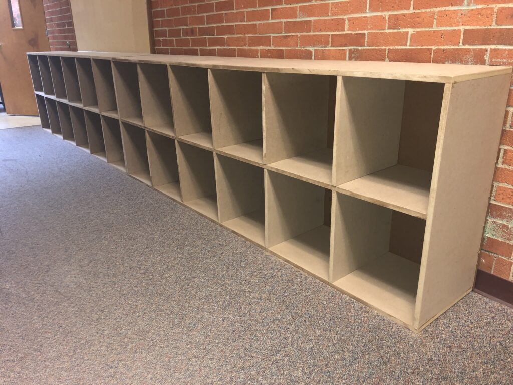Built 36 cubbies, 16 x 16 x 16 for WACA center. Used 3/4″ MDF board. Glued and nailed the cases. Took a day and a half. For the taller unit, I did anchor the unit to the wall in 2 places. I did not anchor the two shorter units because they are so heavy and it would be near impossible to tip over.